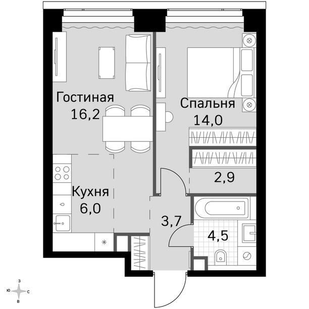 1 - комнатная квартира