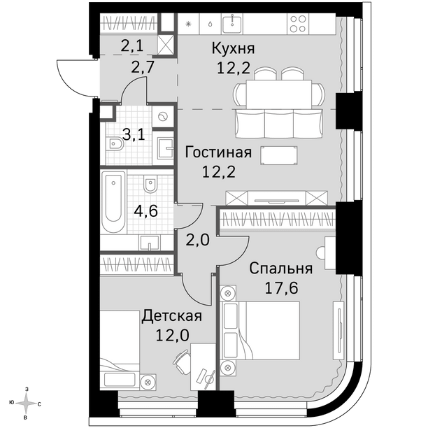 2 - комнатная квартира
